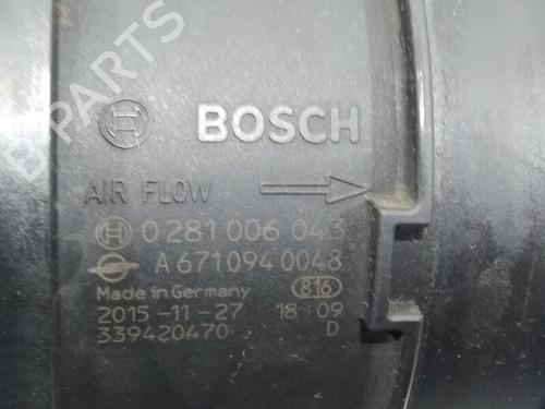 Mass air flow sensor SSANGYONG RODIUS II 2.2 Xdi 4WD is a unique original used part with the reference a6710940048 | 0281006043 | Bosch and with the article's id BP25146338M95