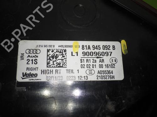 Tail light right, AUDI (NSU) Q2 Typ GAB/GAG from 06.2016. Displacement: 1968. KW: 110. HP: 150. Fuel: DIESEL. Mileage: 16945. First registration: 09.01.2024. Engine code: DTTC. Gearbox code: VDV. Reference number: 81A945092B. Note: AUDI (NSU) 81A945092B. Paint code: LY9T. Colour: BLACK. 81A945092B