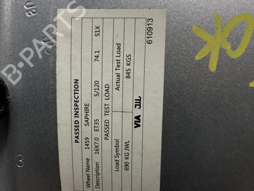 Aluminiums fælg (ADAPTABLE) BMW SERIE 1 E87 PH2 Reference: 1459 SAPHIRE 16x70 J - ET35 16 Tommer 5 Huller Viser brugsridser (se fotos) N47-D20C