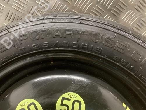 Reservehjul i stål med dæk (nyt - aldrig monteret) Fælgedimension: 3 1/2J x 15H2 - ET15 Fælgstørrelse: 15 tommer Dækmærke: MAXXIS SPARE TIRE Dækstørrelse: T125/80 R15 - 95M EP3C(8FP) BE4-5R