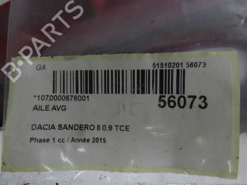 Forskærm venstre DACIA SANDERO II TCe 90 (B8M1, B8MA, B8AC) er en unik original brugt del med referencen 631019973R og med artiklens id BP31324649C41