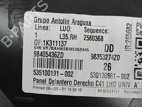 Høyre frontpanel CITROËN C4 III (BA_, BB_, BC_) 1.2 PureTech 130 (BAHNSA, BAHNSB) 98405436ZD98353274ZD